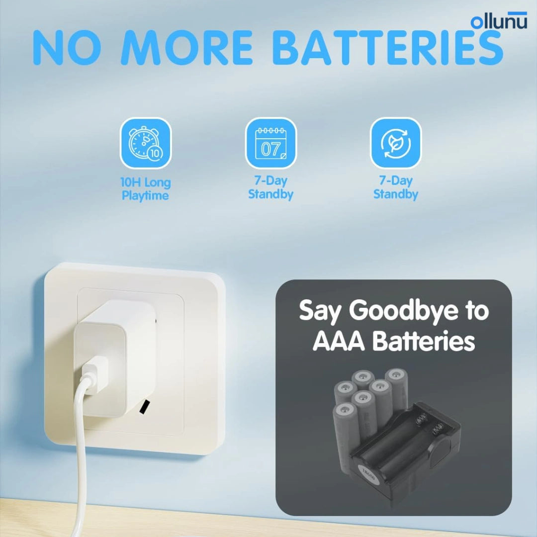 - Rechargeable via USB-C (cables included) for easy, eco-friendly power