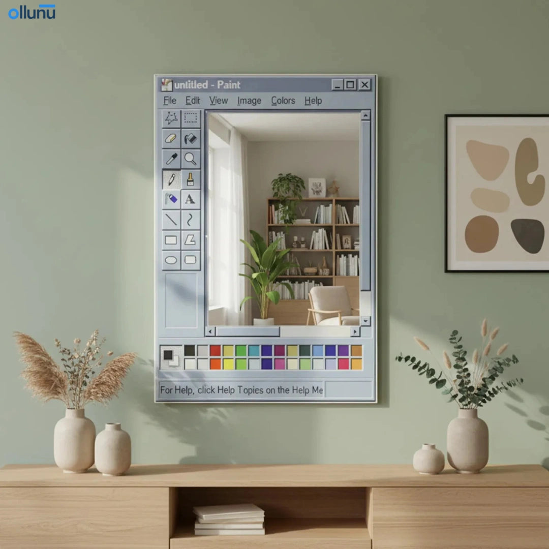 🪞 Nostalgia meets modern design. The Ollunu™ – MS Paint Mirror frames your reflection with the iconic toolbar, window chrome, and color palette you remember. A playful statement piece for desks, entryways, and creative studios.